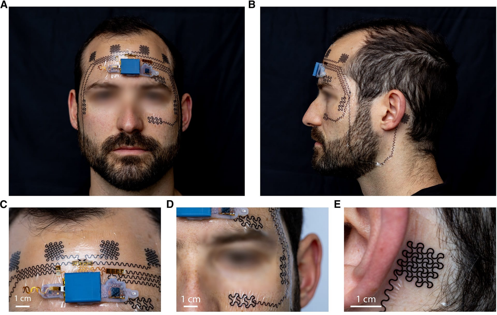В отличие от них, «электронная татуировка» — это лёгкое, гибкое, беспроводное устройство, выполненное из графитового проводящего материала. Оно фиксируется на лбу при помощи специальной клеящей плёнки. На лбу размещаются четыре ЭЭГ-электрода для анализа мозговой активности, а контрольный электрод — за ухом. Электроды ЭОГ вокруг глаз отслеживают движения глаз. Все элементы гибкие и одноразовые, но соединяются с многоразовой печатной платой, включающей модули питания, аналоговый интерфейс, преобразователь сигнала и Bluetooth-модуль.