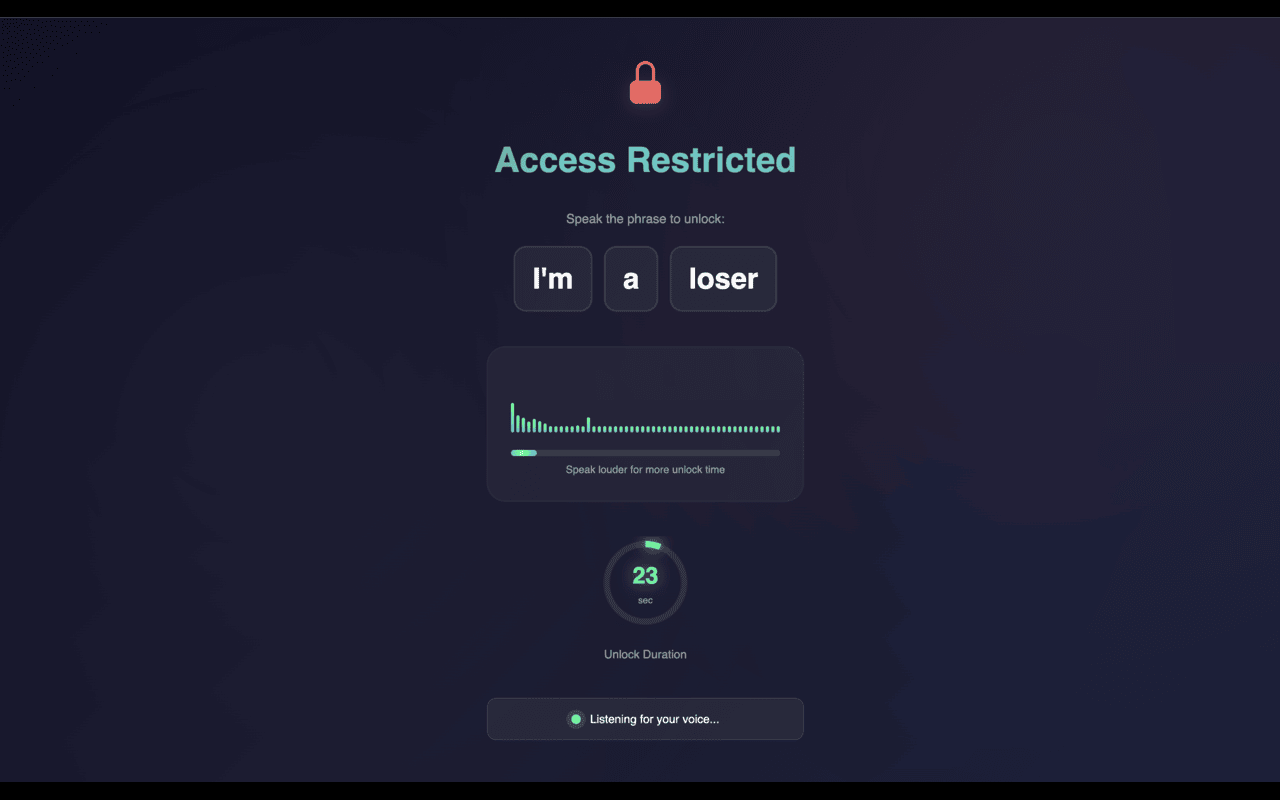 Разработчик Панкадж Танвар предложил нестандартный способ борьбы с прокрастинацией в социальных сетях — расширение для Google Chrome, которое открывает доступ к платформам вроде X, Facebook** и Instagram**, только если пользователь крикнет в микрофон фразу "I’m a loser" («Я неудачник»).