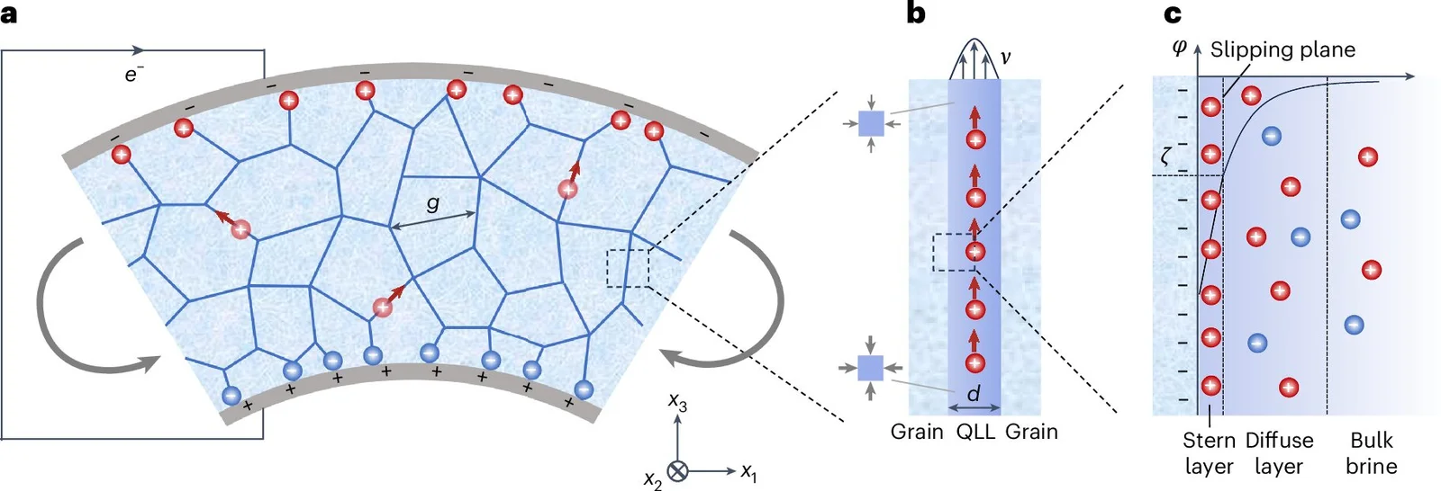 Результаты показали, что солёный лёд способен генерировать электрический заряд в 1000 раз активнее, чем чистый. Анализ с использованием электронной микроскопии и рамановской спектроскопии помог объяснить этот эффект: соль препятствует полному затвердеванию воды, оставляя в структуре льда микроскопические каналы, заполненные раствором. Под нагрузкой жидкость начинает циркулировать внутри этих микрополостей, вызывая движение ионов — и, как следствие, возникновение электрического тока. Этот механизм ученые назвали потоковым флексоэлектричеством.