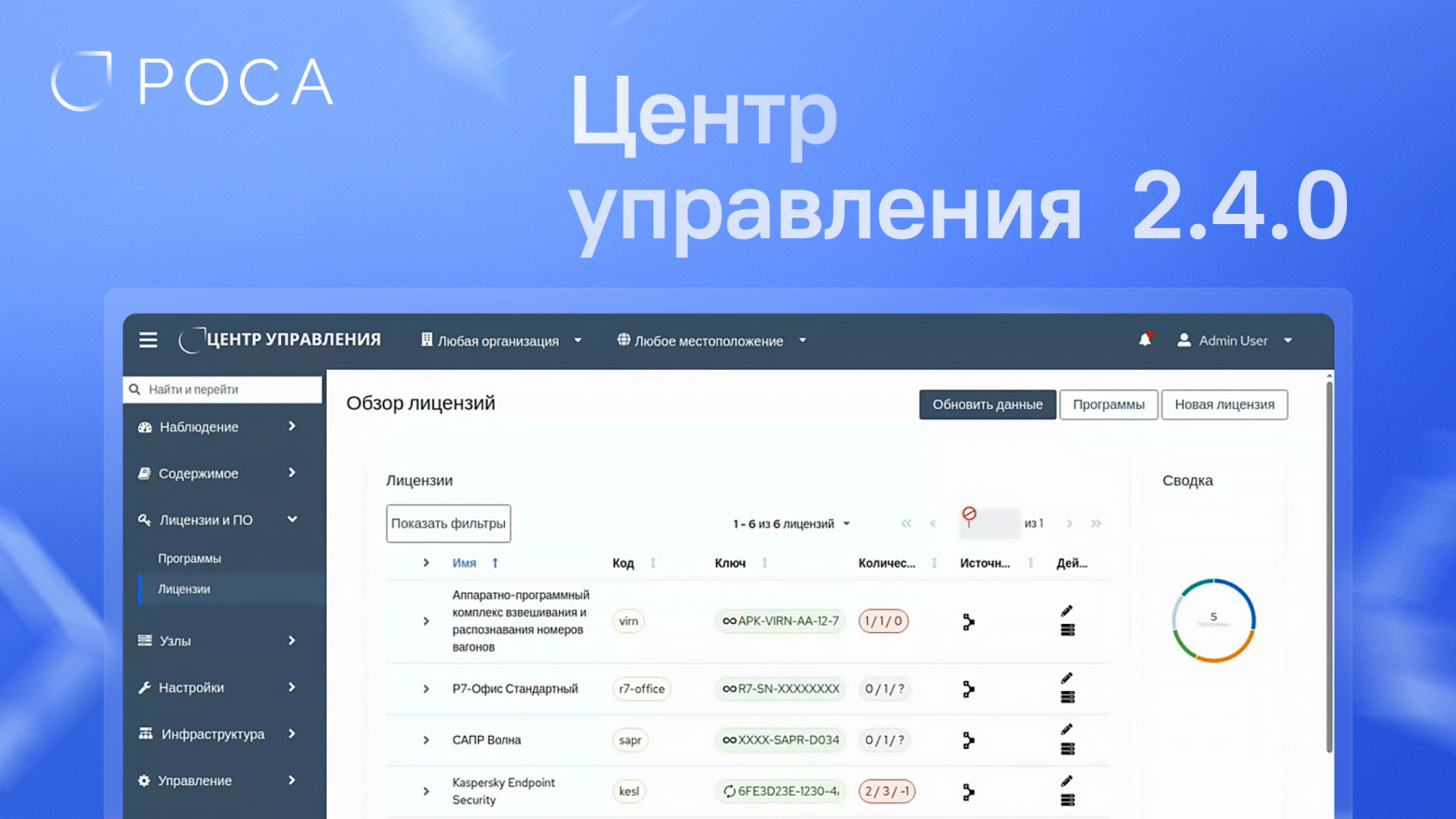 В версии 2.4.0 также добавлен централизованный учёт лицензий на средства защиты информации, операционные системы и другое ПО. Новый модуль позволяет отслеживать использование цифровых ИТ-активов, контролировать сроки действия лицензий и проводить аудит установленного программного обеспечения. Такая функция способствует оптимизации расходов, предотвращает несанкционированное использование ПО и повышает прозрачность управления инфраструктурой.